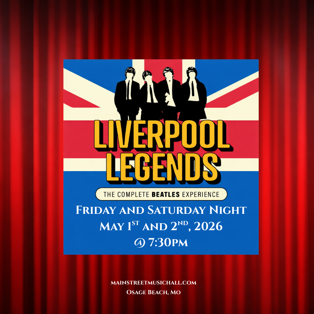 Step back into the golden age of music as Liverpool Legends brings the sound, energy, and spirit of The Beatles to the stage at Main Street Music Hall. Performing live on May 1 and May 2 at 7:30 PM, this internationally acclaimed tribute show delivers a powerful, note-for-note journey through one of the most iconic catalogs in music history.